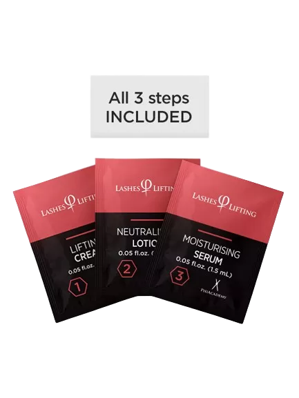 Si vous savez déjà que vous voulez acheter les étapes, vous pouvez choisir notre Lashes Lifting Set. Il comprend les 3 sachets nécessaires pour les traitements.