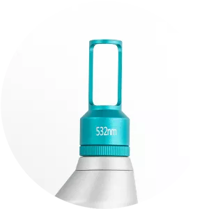 L’accessoire Green Head avec une longueur d'onde de 532 nm cible les pigments bruns et rouges implantés.