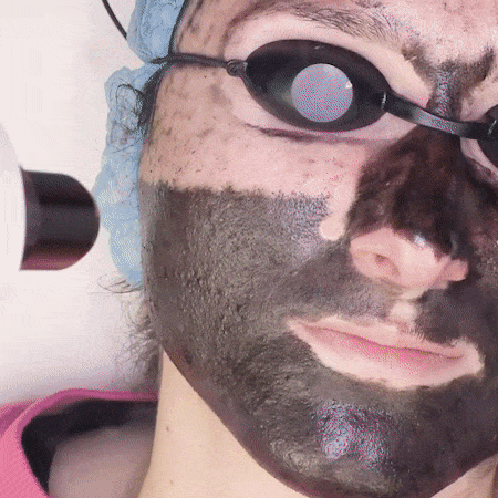 La solution de carbone est appliquée sur la peau et, en séchant, se combine avec le sébum et les autres impuretés à la surface de la peau. Le laser pulsé décompose les particules de carbone et, avec elles, les impuretés de la peau.