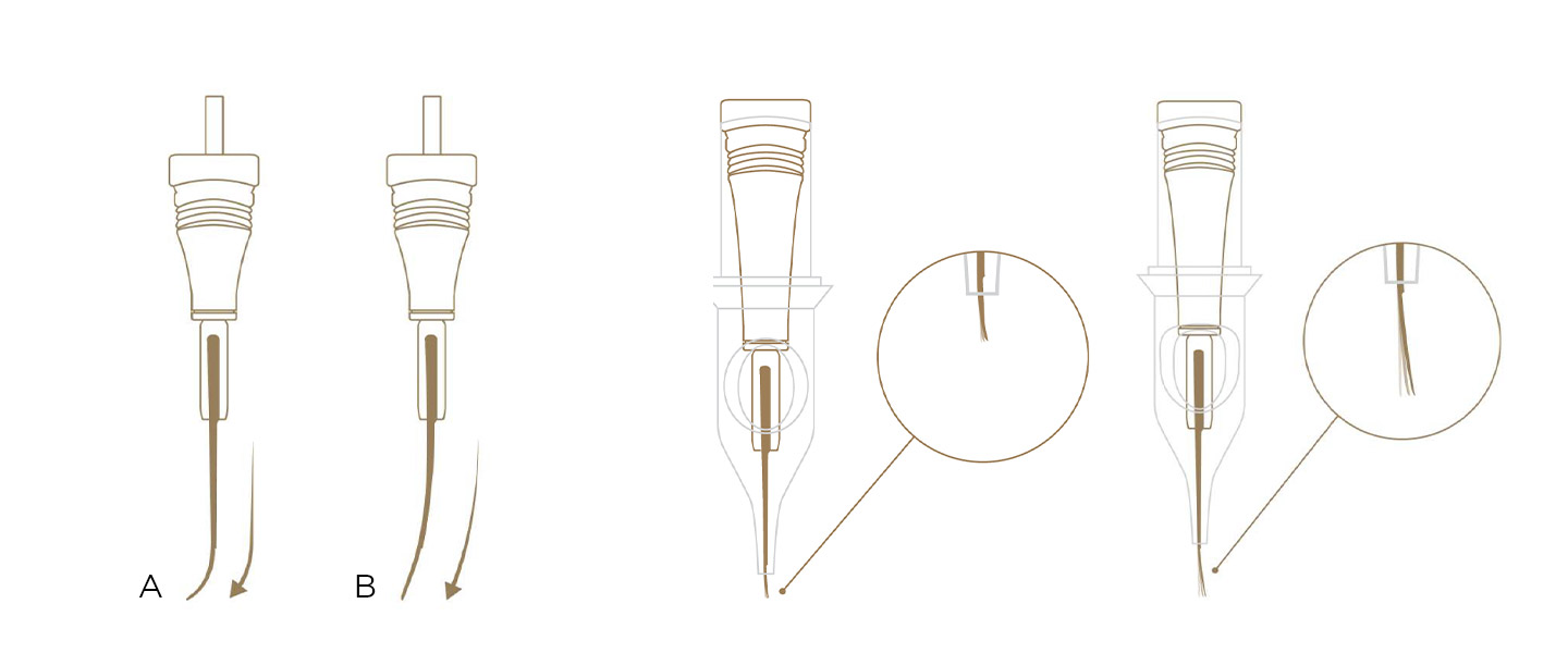 L'élasticité de l'aiguille est nécessaire pour créer un effet de poudre lors du remplissage. L'élasticité permet aux artistes d'obtenir de micro pixels avec des traits puissants, ce qui peut être très utile pour les débutants.
